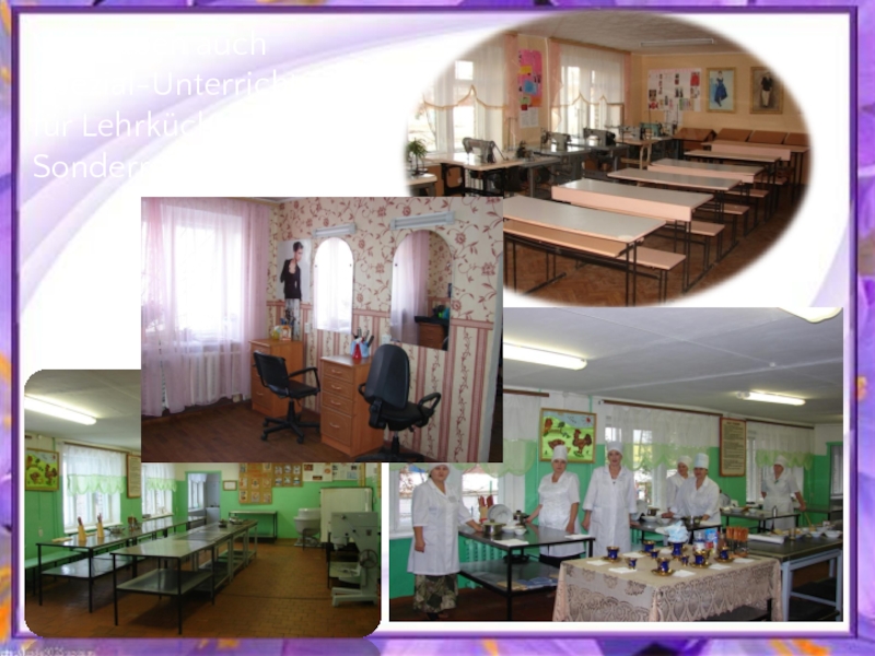 Слайд 2Wir haben auch Spezial-Unterrichtsräume für Lehrküche, Bäckerei, Sonderraum für Nähen.