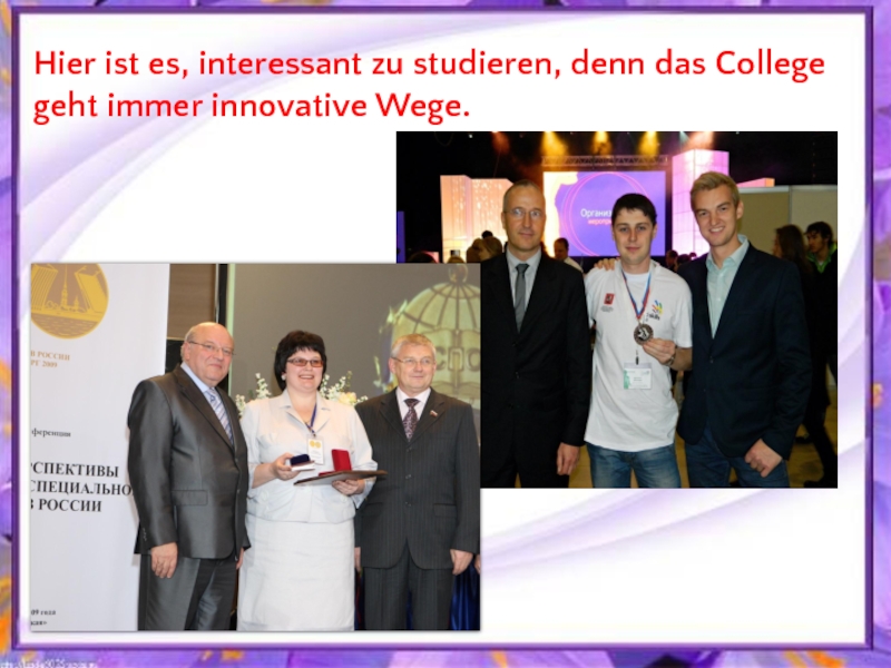Слайд 7Hier ist es, interessant zu studieren, denn das College geht immer