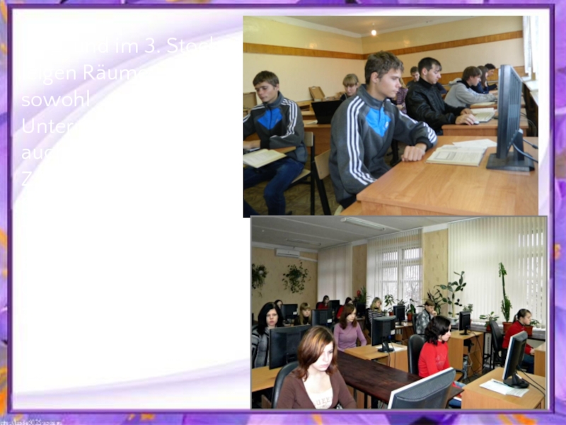 Слайд 3Im 2. und im 3. Stock leigen Räume: sowohl Unterrichtsräume, als
