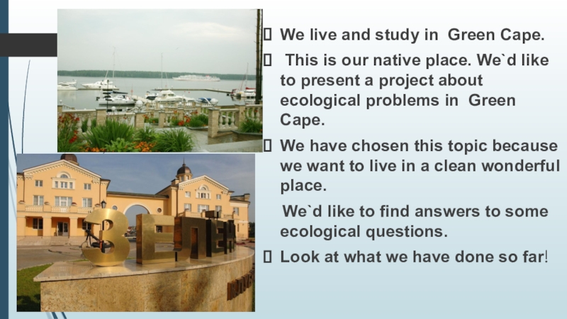 of all, we asked some questions to our Biology teacher. She knows a lot about world around us and she helped us great. We translated the answers into English and we understood that nature in The Green Cape needs protection: