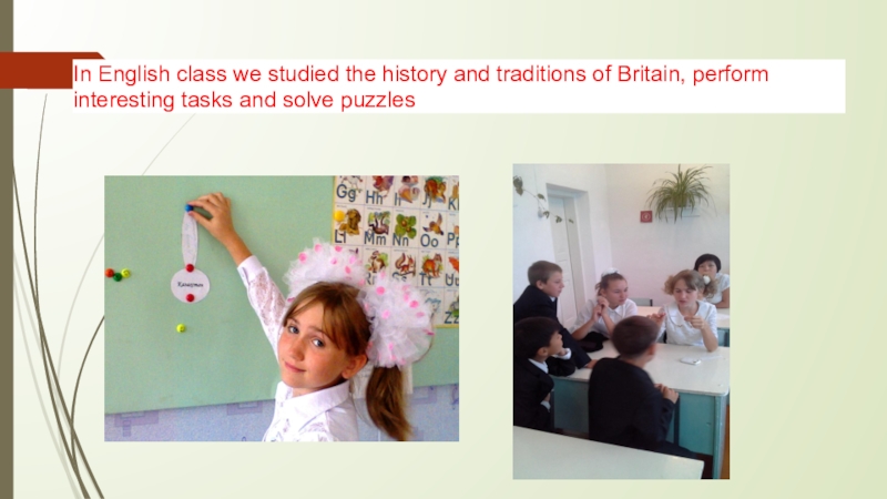 In English class we studied the history and traditions of Britain, perform interesting tasks and solve puzzles