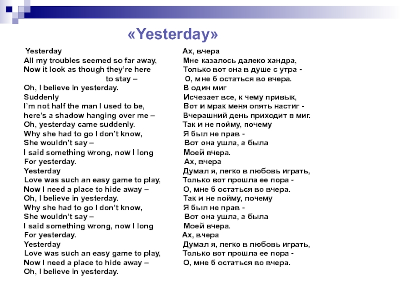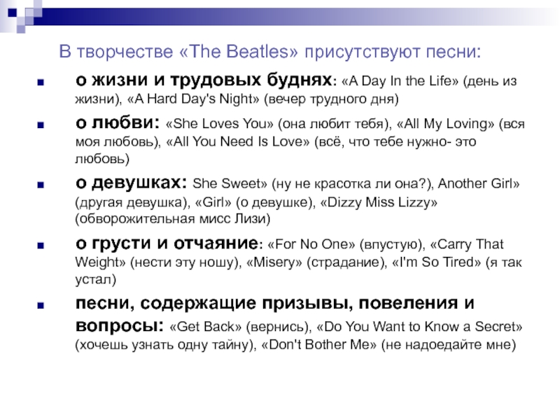 В творчестве «The Beatles» присутствуют песни: