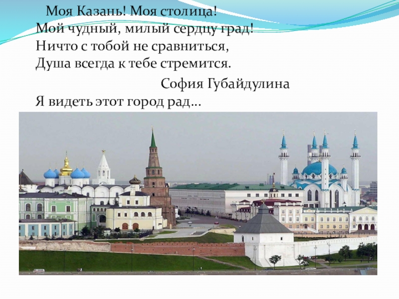 Слайд 6 Моя Казань! Моя столица! Мой чудный, милый сердцу град! Ничто