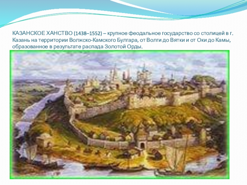 Слайд 4КАЗАНСКОЕ ХАНСТВО (1438–1552) – крупное феодальное государство со столицей в г.Казань на