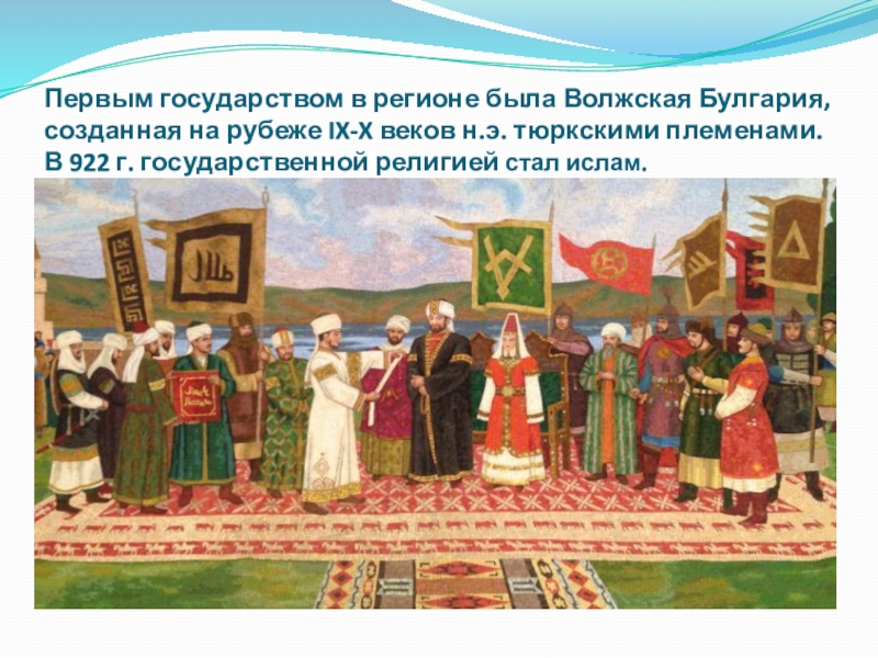 Слайд 2Первым государством в регионе была Волжская Булгария, созданная на рубеже IX-X