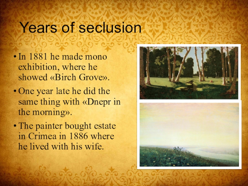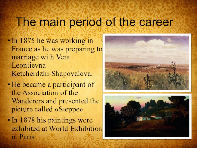At the same time he got acquainted with wanderers(Kramskoy, Repin).