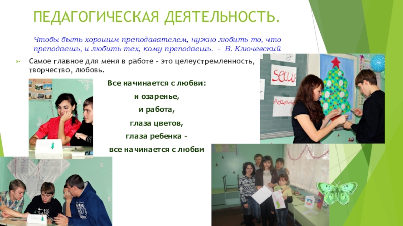 Самое главное для меня в работе – это целеустремленность, творчество, любовь.