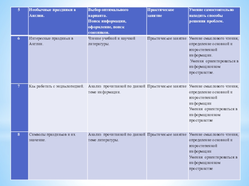 традициями страны изучаемого языка (музыка, история, театр, литература, традиции, праздники и т.д.);