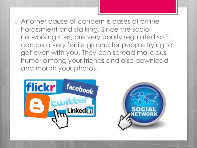 Слайд 9Another cause of concern is cases of online harassment and stalking.