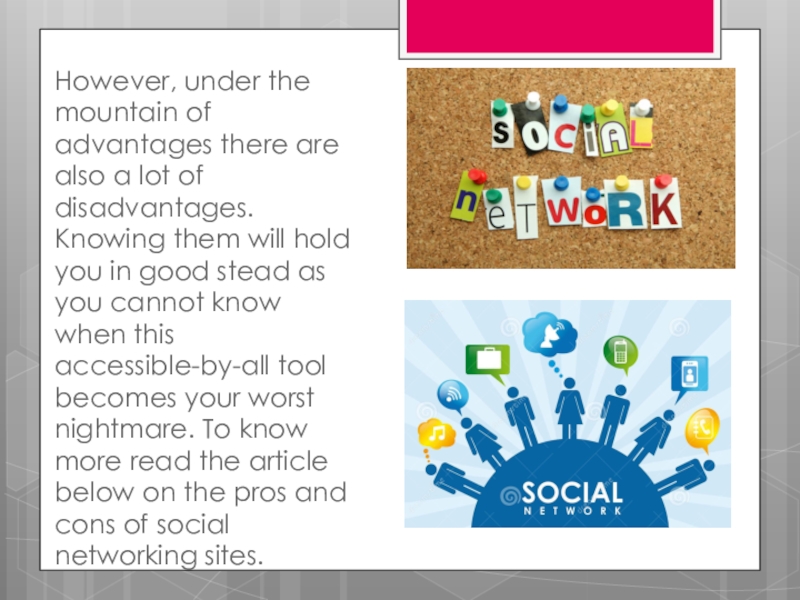 Слайд 5Advantages & Disadvantages Of Social Networking Sites