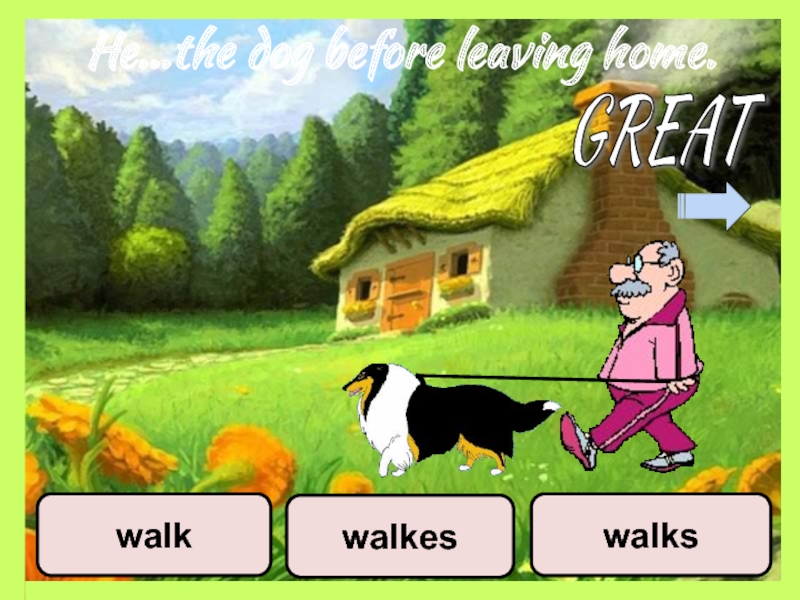 He…the dog before leaving home.walkeswalkswalkGREAT