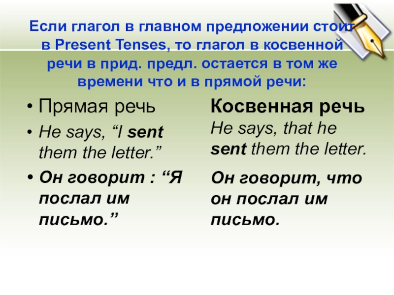 Он говорит : “Я послал им письмо.”