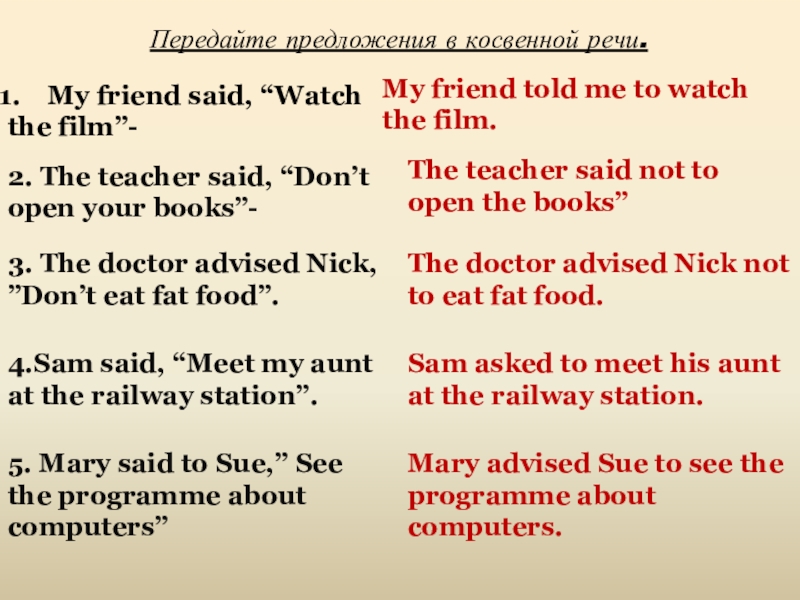 3. The doctor advised Nick, ”Don’t eat fat food”.