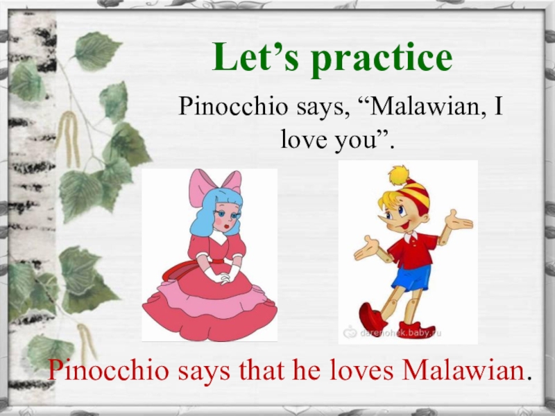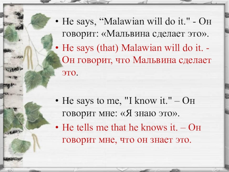 Слайд 10He says, “Malawian will do it." - Он говорит: «Мальвина сделает