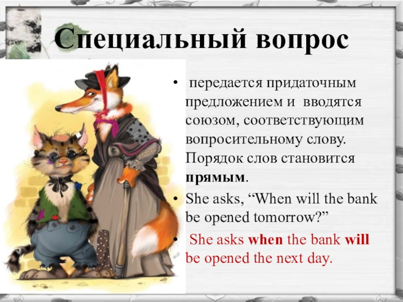 передается придаточным предложением и вводятся союзом, соответствующим вопросительному слову.