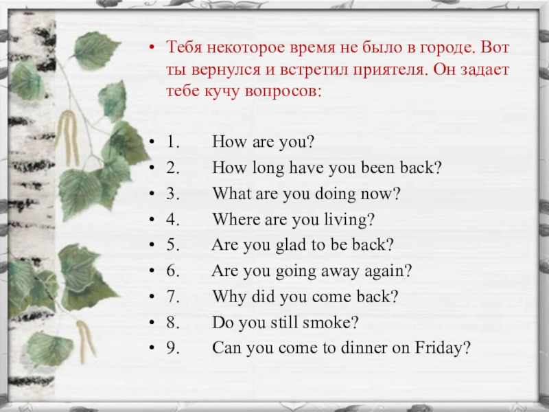Слайд 22Тебя некоторое время не было в городе. Вот ты вернулся и