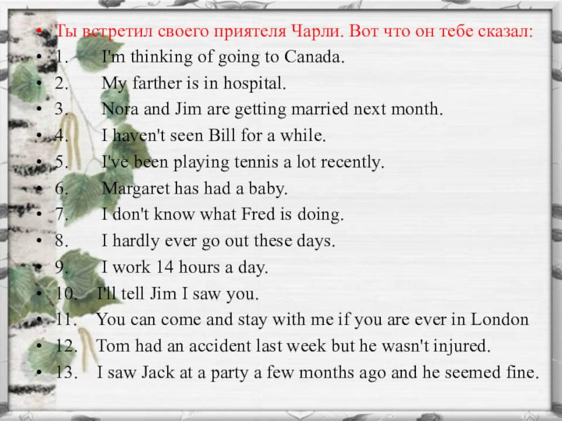 Слайд 21Ты встретил своего приятеля Чарли. Вот что он тебе сказал: