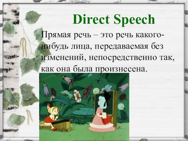 Прямая речь – это речь какого-нибудь лица, передаваемая без изменений,