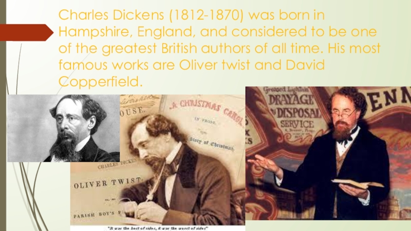 Слайд 4Charles Dickens (1812-1870) was born in Hampshire, England, and considered to