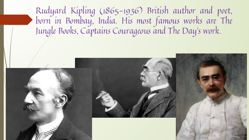 Слайд 8Rudyard Kipling (1865-1936) British author and poet, born in Bombay, India.