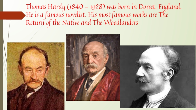 Слайд 6Thomas Hardy (1840 - 1928) was born in Dorset, England. He