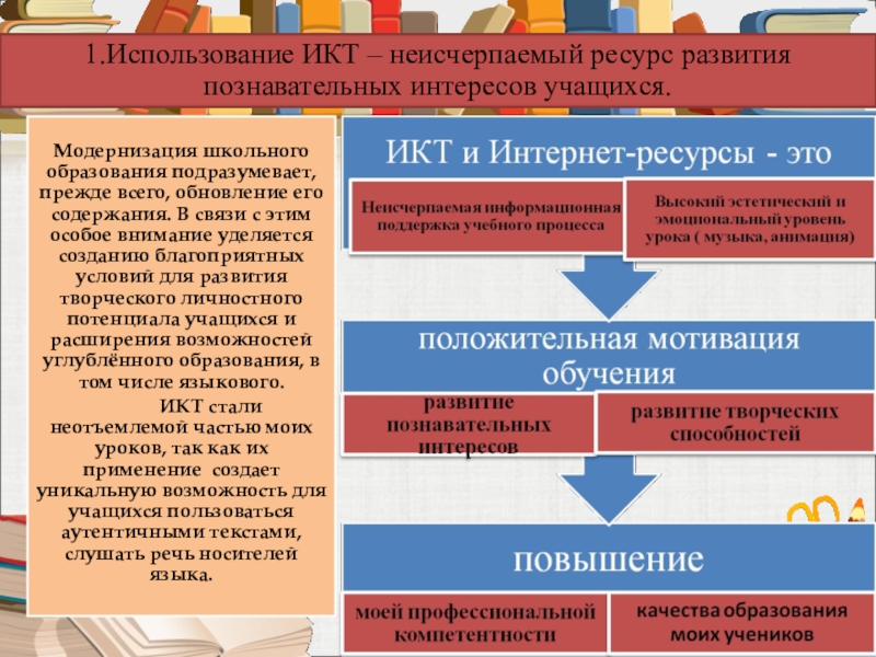 1.Использование ИКТ – неисчерпаемый ресурс развития познавательных интересов учащихся.