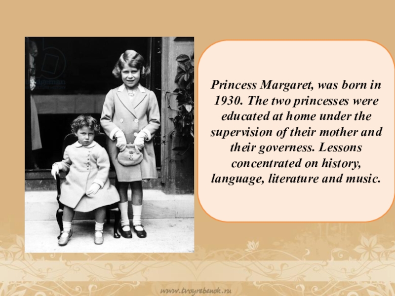 at home under the supervision of their mother and their governess. Lessons concentrated on history, language, literature and music.