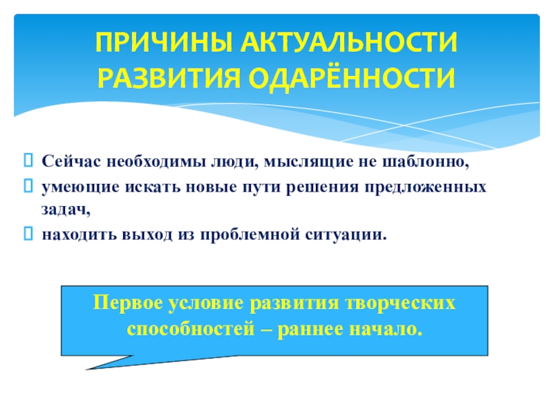ПРИЧИНЫ АКТУАЛЬНОСТИ РАЗВИТИЯ ОДАРЁННОСТИ