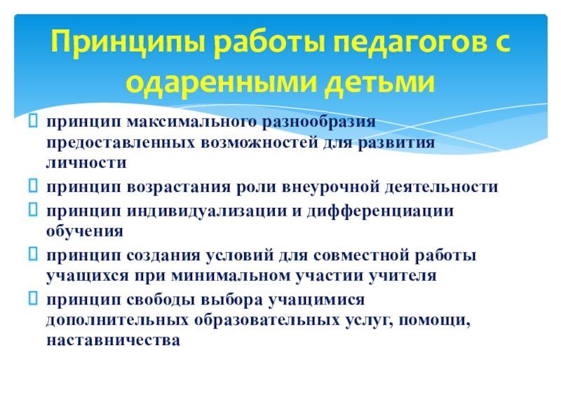 Принципы работы педагогов с одаренными детьми