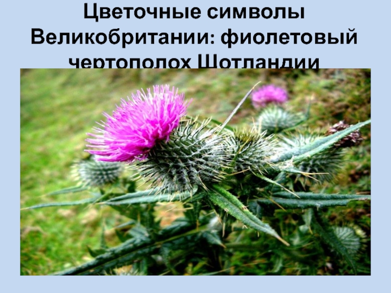 Слайд 9Цветочные символы Великобритании: фиолетовый чертополох Шотландии