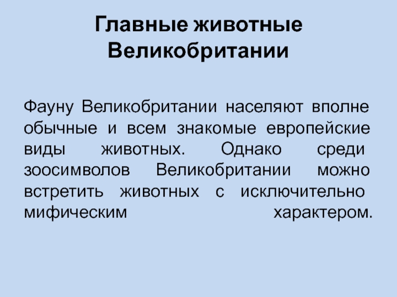 виды животных. Однако среди зоосимволов Великобритании можно встретить животных с исключительно мифическим характером.