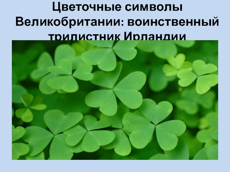 Слайд 8Цветочные символы Великобритании: воинственный трилистник Ирландии
