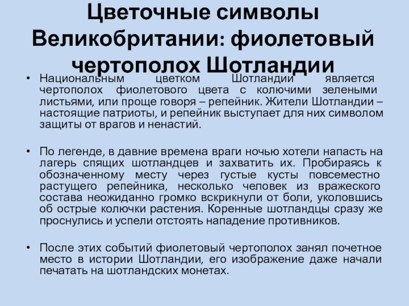 Слайд 10Цветочные символы Великобритании: фиолетовый чертополох Шотландии