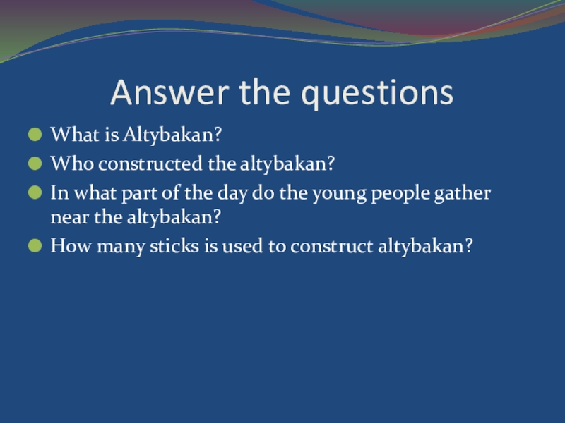 Answer the questionsWhat is Altybakan?Who constructed the altybakan?In what part of the day do the young people