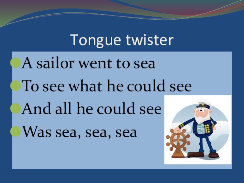 Tongue twisterA sailor went to seaTo see what he could seeAnd all he could seeWas sea, sea,