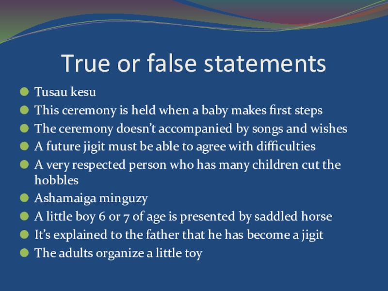 True or false statements Tusau kesuThis ceremony is held when a baby makes first stepsThe ceremony doesn’t