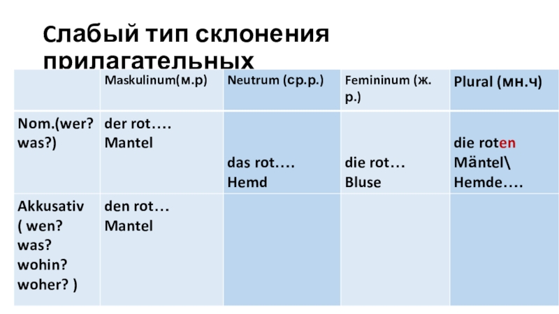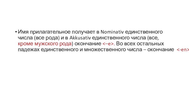 Слайд 8Имя прилагательное получает в Nominativ единственного числа (все рода) и в