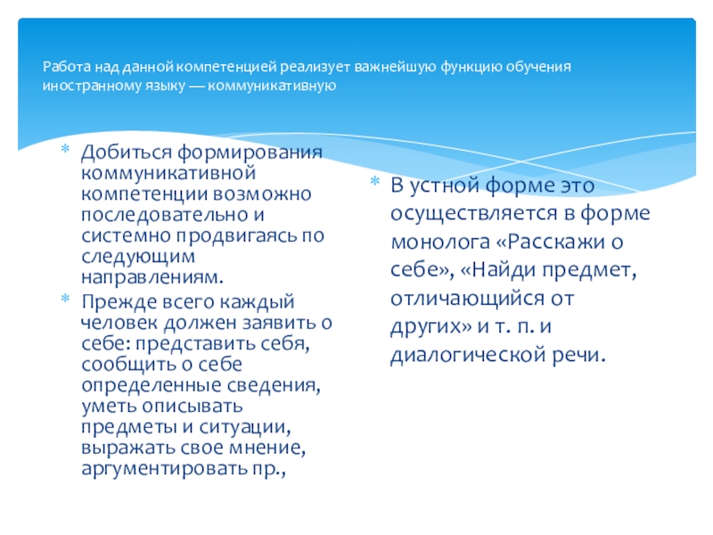 Прежде всего каждый человек должен заявить о себе: представить себя, сообщить о себе определенные сведения, уметь описывать предметы и ситуации, выражать свое мнение, аргументировать пр.,