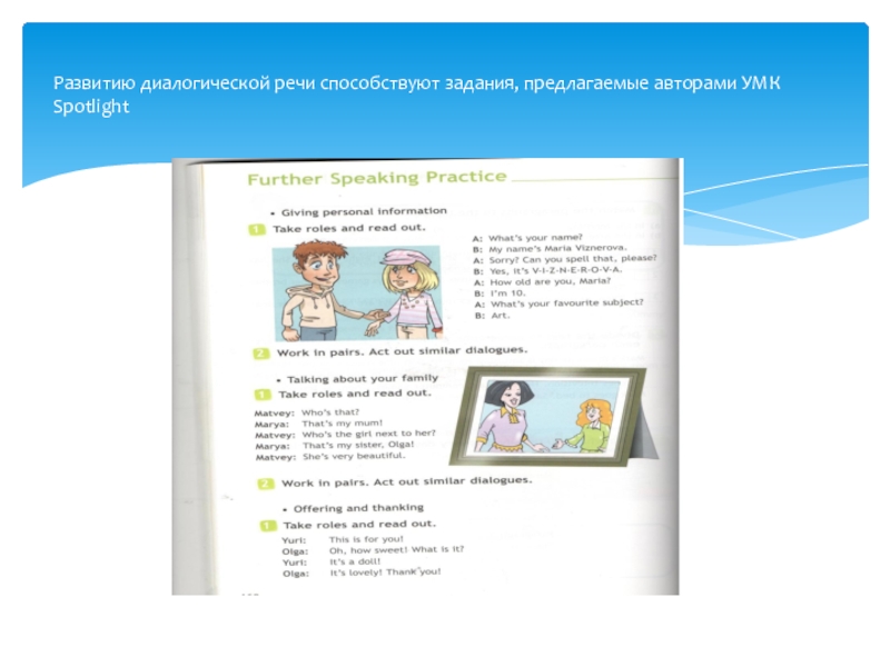 В устной форме это осуществляется в форме монолога «Расскажи о себе», «Найди предмет, отличающийся от других» и т. п. и диалогической речи.