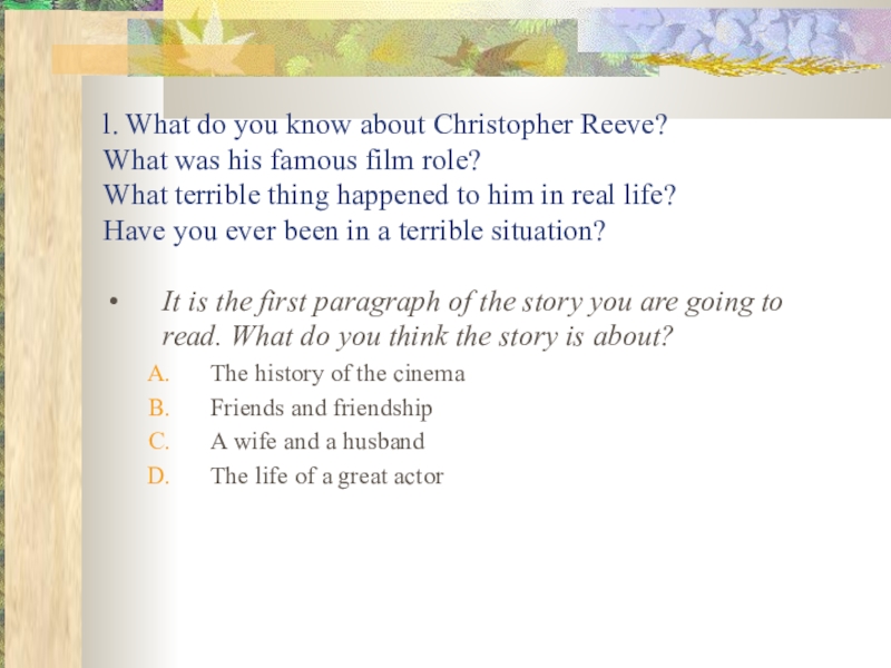 It is the first paragraph of the story you are going to read. What do you think the story is about?