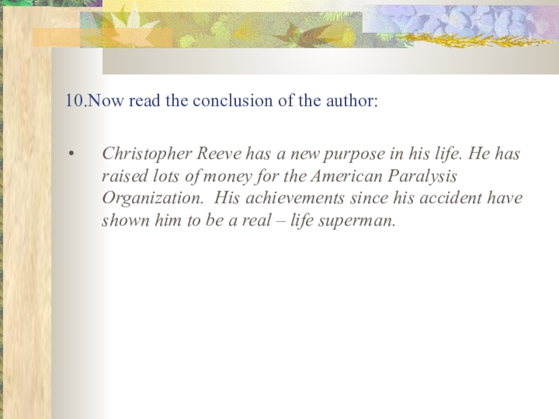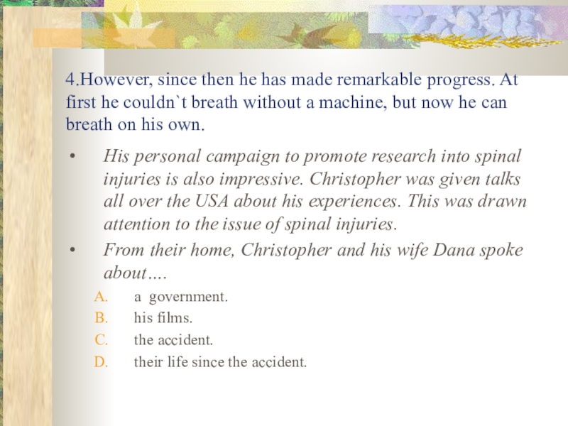 His personal campaign to promote research into spinal injuries is also impressive. Christopher was given talks all over the USA about his experiences. This was drawn attention to the issue of spinal injuries.