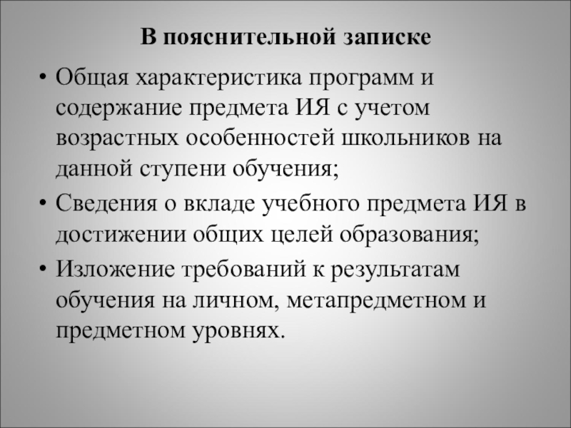 Общая характеристика программ и содержание предмета ИЯ с учетом
