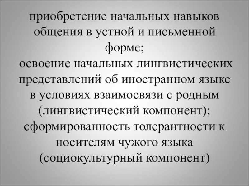 Слайд 5приобретение начальных навыков общения в устной и письменной форме;