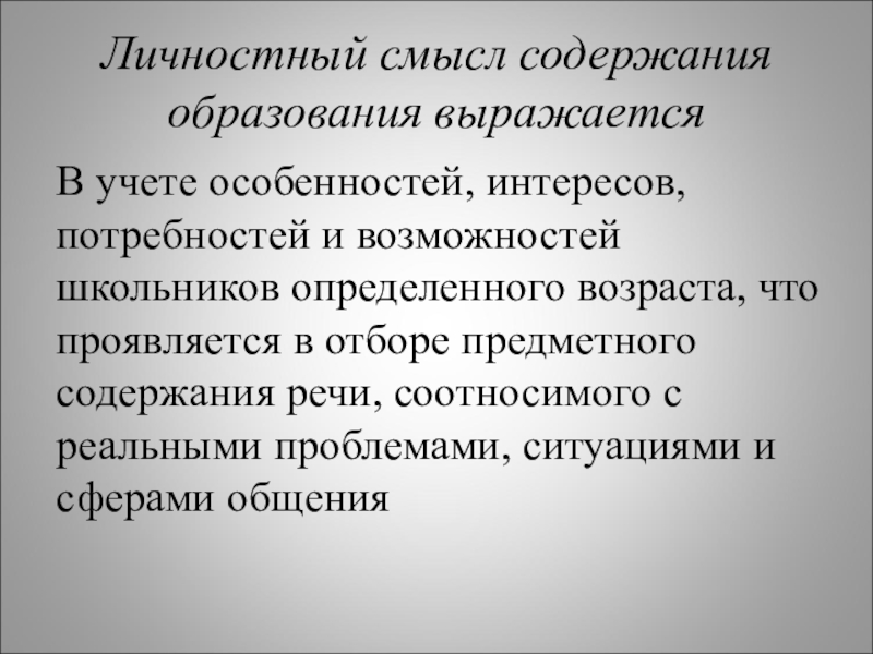 школьников определенного возраста, что проявляется в отборе предметного содержания речи, соотносимого с реальными проблемами, ситуациями и сферами общения