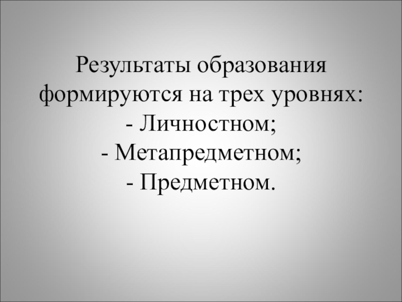 Изложение требований к результатам обучения на личном, метапредметном и предметном уровнях.
