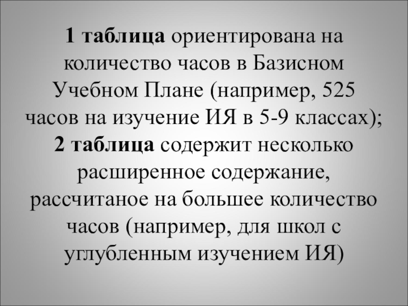 2 таблица содержит несколько расширенное содержание, рассчитаное на большее количество часов (например, для школ с углубленным изучением ИЯ)