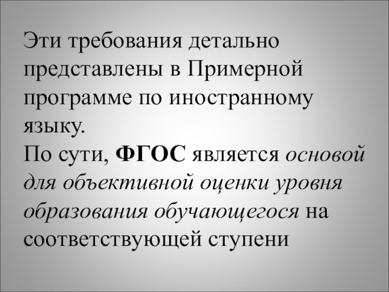 Слайд 6Эти требования детально представлены в Примерной программе по иностранному языку.