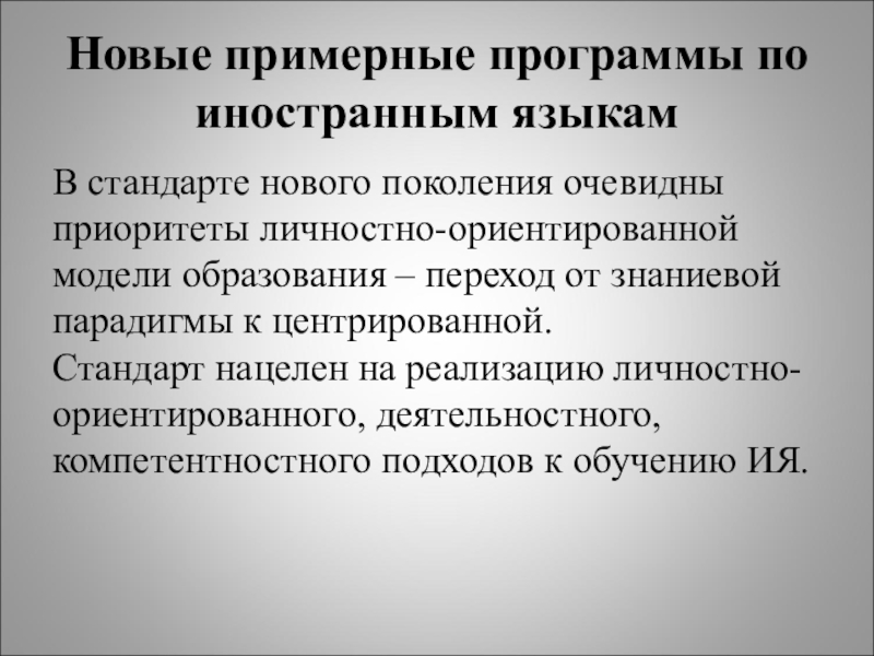 личностно-ориентированной модели образования – переход от знаниевой парадигмы к центрированной.
