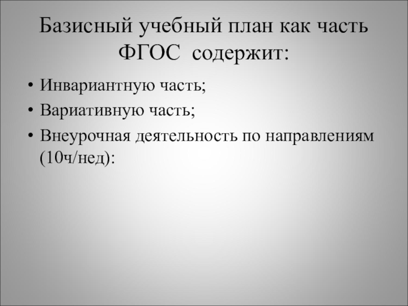 Слайд 3Базисный учебный план как часть ФГОС содержит: