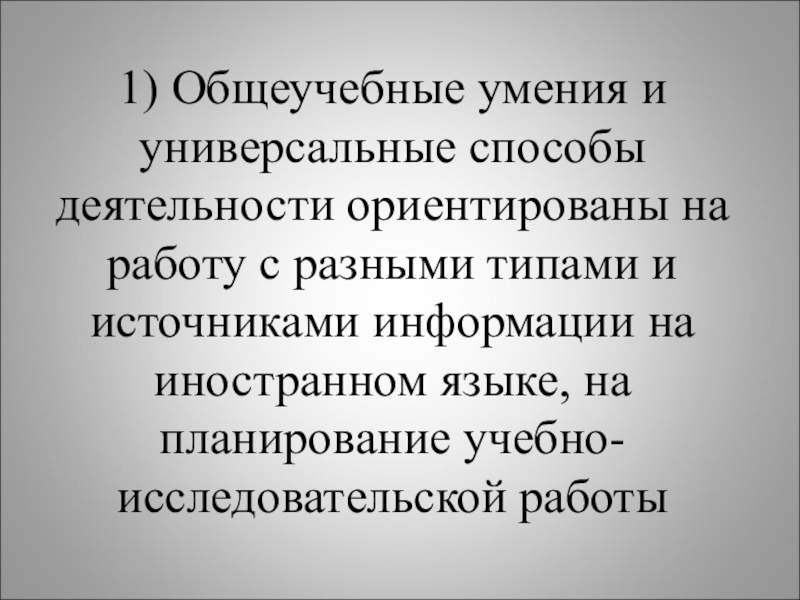 Слайд 221) Общеучебные умения и универсальные способы деятельности ориентированы на работу с